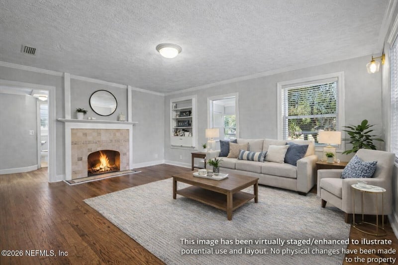 Listing details for 8109 Oakwood St, Jacksonville, FL 32208 : 1 block to St. Johns River • river views • single-story living • fenced yard • oversized 2-car garage Charming one-story 3BR/2BA home freshly painted inside and out with a 1-year-old roof. Enjoy river views from the front yard, fully fenced backyard & an oversized 2-car garage ideal for storage/hobbies. Kitchen includes stainless steel appliances, water filtration system. Vaulted family room features a custom Murphy queen size bed and mini-split (both convey), creating flexible family room / guest and/or home office space. Indoor laundry room includes Samsung washer & dryer + built-in shelving. Original hardwood & fireplace add to this beauty! Public water & sewer, no HOA. Whether you're looking for a primary residence, vacation home, or rental investment, this property offers strong potential in a growing area. Convenient access to I-95, downtown Jacksonville, 13 minutes to EverBank Stadium, 7 minutes to Jax Zoo, 17 min to JAX Airport. Move-in ready with strong potential Some images have been virtually staged/enhanced to illustrate potential use and layout. No physical changes have been made to the property.