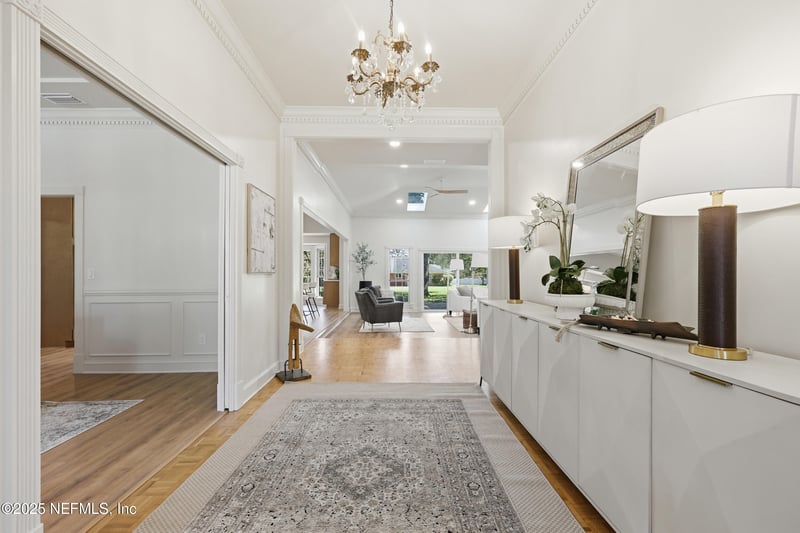 Listing details for 8127 Middle Fork Ln, Jacksonville, FL 32256 : Welcome to 8127 Middle Fork Ln, a rare opportunity in the prestigious Deerwood Country Club. This fully reimagined 3,844 sq. ft. residence blends timeless elegance with modern sophistication, offering 4 bedrooms and 4.5 bathrooms. No detail was overlooked in the complete renovation. The home features a new roof, complete repipe, new water heater, updated electrical, all new flooring, and fresh designer paint. The heart of this home is the open-concept kitchen with all-new appliances, custom cabinetry with soft-close doors, and dovetail drawer construction, and an oversized island. The primary suite features a freestanding tub, oversized walk-in shower, and dual closets. A reimagined wine room off the main living area sets the stage for elegant entertaining, while the oversized back porch with new pavers offers the perfect outdoor retreat. Rarely does a home of this caliber come to market in Deerwood—this is the lifestyle you've been waiting for!