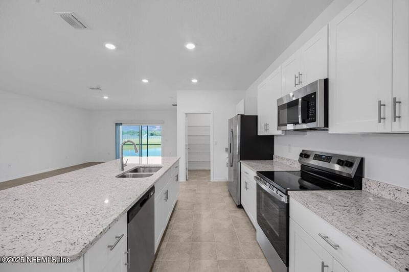 Listing details for 8148 Archibald Ter, Jacksonville, FL 32219 : What's Special: Best Seller | Oversized Covered Patio ~ New Construction - Ready Now! Built by America's Most Trusted Home Builder. Welcome to the Mulberry at 8148 Archibald Terrace in Coopers Meadow! Discover a spacious open-concept living area filled with natural light. Just off the foyer, you'll find a secondary bedroom and full bath, while two additional bedrooms and a third bath are tucked behind the kitchen for privacy. At the heart of the home, the kitchen overlooks the dining area and great room, with sliding doors leading to the lanai for effortless indoor-outdoor living. The primary suite is a private retreat featuring an en-suite and walk-in closet. Additional highlights include: Extended tile, refrigerator, washer and dryer, window blinds, and a screened lanai. MLS#2104566