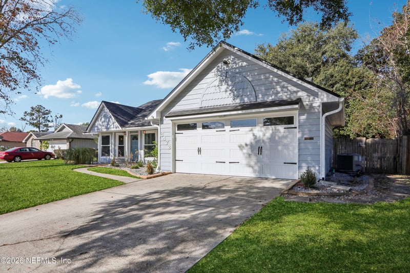 Listing details for 8472 Bandera Cir, Jacksonville, FL 32244 : OPEN HOUSE: Saturday, 1/17/2026, 12 PM-4 PM. Beautifully updated 3BR/2BA ranch-style home in the established Argyle/Chimney Lakes community, offering 1,715 sq ft of comfortable single-story living. This move-in-ready residence features a desirable split-bedroom layout, welcoming foyer, and newer laminate flooring with tile in wet areas. Major 2026 upgrades include a new roof, new exterior siding, fresh exterior paint, and new carpet on the rear screened patio. Additional improvements include a new garage door (2024), HVAC replacement (2020), and vinyl window replacements plus a new electrical panel and breakers (2019). Both bathrooms have been updated within the last two years, and the hot/cold plumbing has been repiped. The updated kitchen offers a breakfast bar, eat-in space, pantry, and ample storage, opening to the living area with a cozy wood-burning fireplace. Enjoy outdoor living with a screened patio, covered front porch, fenced backyard, and storage shed.