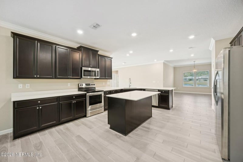 Listing details for 85237 Fall River Pw, Fernandina Beach, FL 32034 : Discover serenity and modern luxury in this practically new 2021-built home, perfectly positioned on one of the most desirable lakefront homesites in Fernandina Beach. Wake up to breathtaking views of the sparkling lake with its charming fountain, where the water curves gracefully along the side of the property, creating a private, secluded point-like setting. Step inside to an open and inviting layout featuring elegant wood-look tile flooring throughout the main living areas, neutral paint palette for effortless style, and ceiling fans for year-round comfort. The gourmet island kitchen impresses with stainless steel appliances, tall 42'' rich dark cabinetry, and ample counter space—perfect for entertaining. Convenience abounds with included washer, dryer, and window blinds. Outdoor living shines with a covered patio, extended paver area for al fresco dining, and a stunning brick paver driveway leading to the oversized 3-car garage. Enjoy the best of coastal Florida living.— just 10 minutes from Amelia Island's historic downtown, pristine beaches, shopping, and dining. The vibrant community amenity center offers resort-style perks including a sparkling pool, fitness room, tennis and pickleball courts, tot lot, and more. This move-in-ready gem combines tranquility, privacy, and proximity to paradiseschedule your private showing today!