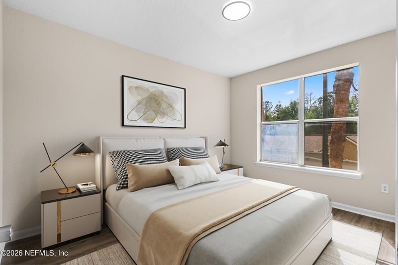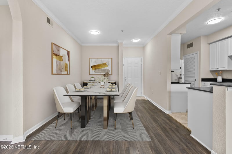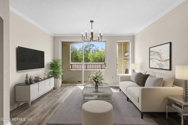 Listing details for 8539 Gate Pw #9233, Jacksonville, FL 32216 : Beautifully updated condo in the gated Villa Medici community, offering low-maintenance living in a prime Jacksonville location. This light-filled unit features an open-concept layout with durable wood-look flooring throughout the main living areas and neutral finishes that create a bright, modern feel. The kitchen is equipped with white cabinetry, sleek countertops, stainless steel appliances, and a functional layout perfect for everyday living and entertaining. Spacious living and dining areas flow seamlessly to a private balcony, ideal for relaxing or enjoying your morning coffee. The primary suite offers generous space, ample closet storage, and an en-suite bath with dual vanities and a walk-in shower. Additional bedroom and bath provide flexibility for guests or a home office. Residents enjoy resort-style amenities including a community pool, clubhouse, fitness center, and beautifully maintained grounds, all conveniently located near shopping, dining, St. Johns Town Center, and major highways for easy commuting.