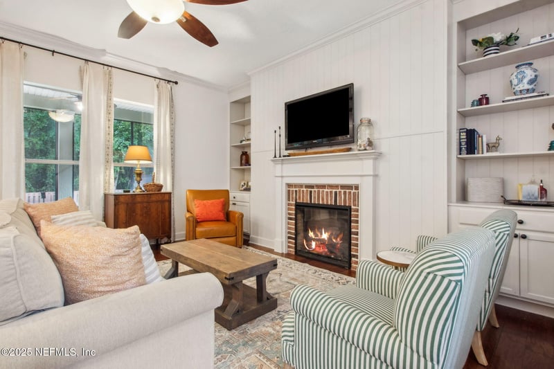 Listing details for 85488 Sagaponack Dr, Fernandina Beach, FL 32034 : Beautifully updated and move-in ready, this spacious 5BR/3.5BA home in North Hampton offers style, comfort, and a prime location. Recent 2023 upgrades include a new roof plus fresh interior and exterior paint. The open-concept layout features an electric fireplace, a downstairs primary suite, and a versatile bonus room ideal for an office, playroom, or media space. Enjoy a fully fenced backyard with a screened lanai and paver patio—perfect for relaxing or entertaining. North Hampton's resort-style amenities include a pool, clubhouse, tennis, pickleball, basketball, and The Outpost with a pavilion, dock, and kayak launch. Golfers will love having a course right in the neighborhood. Minutes to Amelia Island beaches, historic Fernandina, shopping, and top-rated schools, this home delivers luxury, location, and lifestyle.