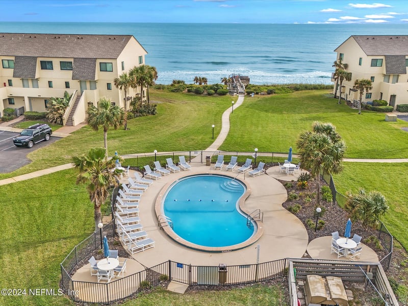 Listing details for 8550 1a #13131, St Augustine, FL 32080 : OCEAN VIEWS and all the upgrades in a meticulously maintained single-story condo! Welcome to the beautiful white sand beaches and ocean breezes of Summerhouse, a gated oceanfront community with an abundance of incredible amenities - 4 sparkling pools, 4 easy beach access boardwalks, community clubhouse, gym, multiple playgrounds and grilling areas, dog park, onsite boat and RV parking, along with pickleball, tennis, and racquetball courts. Summerhouse is the perfect beachside escape, sitting on one of the most beautiful and peaceful beaches in St Augustine. An escape from it all, this is true tranquility while still just a short drive away from the countless sights of St Augustine. Whether you're looking for home, a short-term rental investment, or a second home for relaxation, this is the one! This meticulously updated condo was designed for primary-residence living, in a first-floor, single story unit with a view of the pool and a direct easterly view of the endless ocean beyond. The front walk to the private covered entry invites you in to the tiled foyer with two storage closets. From the foyer, there's a view of the light and bright open floor plan, straight through to the back slider and the ocean. Off the foyer is the beautifully updated kitchen with all stainless-steel appliances, white shaker cabinets, gorgeous granite countertops, and a large pantry cabinet. So much counter space and cabinet storage! Kitchen opens up to the dining room across an expansive countertop with a breakfast bar for additional seating. Tiled Dining Room offers additional built in storage and countertop space, along with a dual temp wine fridge and dry bar. Across the dining room is a custom built-in work space with additional storage. Attractive shiplap lines the walls of the living and dining room, elevating the space with a beautiful warmth. The Living Room boasts additional built-ins, wood-look tile flooring, designer sofa, oversized Lazyboy power recliner, 60" wall-mounted Samsung smart TV, and a drop zone for all your beach gear - just grab your favorite chair and head right out the back slider to the gorgeous white sand beach! Just off the Living Room, the back covered patio is the perfect place to sip your morning coffee with a direct view of the sunrise over the ocean, complete with ocean breezes and the gentle sound of the surf. Back inside, the private owner's suite offers a split king adjustable Sleep Number bed, double closets, and a beautifully updated ensuite bath with tiled walk-in shower. This condo offers extra privacy with a split-bedroom floorplan. The second spacious bedroom and closet are located toward the front of the unit, currently furnished with two twin beds. Nearby is the second beautifully updated shared bathroom, along with in-unit stackable LG washer and dryer, just 1 year new. Condo offers plantation shutters throughout, designer light fixtures, ceiling fans, and detailed trim work. Unit comes fully furnished and with all household items, kitchenware, and more included in the purchase. All you need to bring are your flip flops and swimsuit! Short-term rentals are permitted. Summerhouse offers on-site property management and maintenance, allowing you to sit back and enjoy your investment. Or if you plan to keep it all to yourself, Summerhouse is also a great place to call home. Unit has not been on the rental market for many years, it was lovingly renovated and improved as a primary residence. Rental projections are available upon request. This unit is truly special and a must see! Don't let it be the one that got away - book your showing today to see it in person, and let's make this one yours!