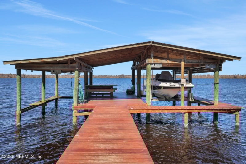 Listing details for 8580 Palmo Fish Camp Rd #G, St Augustine, FL 32092 : Welcome to your own slice of paradise on the St. Johns River. This beautifully situated 3-bedroom, 2-bathroom home offers a comfortable and inviting living space with breathtaking north-facing river views that create the perfect backdrop for everyday living and unforgettable sunsets. Inside, the cozy yet thoughtfully designed floor plan balances privacy and connection. Step outside and embrace the ultimate Florida lifestyle—launch your boat and be just minutes from waterfront restaurants, marinas, and endless recreation. The dock and boat house offer a covered slip and a covered electric lift so you can store multiple boats. Whether you're boating, fishing, or simply enjoying the river breeze, this home delivers the lifestyle most people only dream about. Store your boat trailers and more on this property with a detached garage, carport and storage shed. This property is also currently bringing in money as a short term rental.