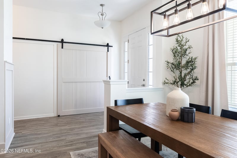 Listing details for 86473 Moonlit Walk Cir, Yulee, FL 32097 : Charming 4-Bed Home with Fenced Backyard, Lanai & Community Pool! Discover comfort, convenience, and Florida-style living in this beautifully updated 4-bedroom, 2-bath home in the peaceful Hideaway neighborhood. Inside, the open-concept layout features vaulted ceilings, a custom gas fireplace built-in, and an elegant dining room with a picture frame wall. The modern kitchen boasts stainless-steel appliances, Corian countertops, and a breakfast bar, perfect for casual meals or entertaining. The bonus room with barn-door access works as a home office, guest room, den, or playroom. The owner's suite offers a walk-in closet, double sinks, and a roomy step-in shower - a relaxing retreat at the end of the day. Outside, enjoy a screened lanai and fully fenced backyard, ideal for weekend barbecues. A 2-car garage and inviting front porch complete the package. As part of The Hideaway, you'll have access to a community pool, playground, walking trails, and low HOA fees with no CDD cost