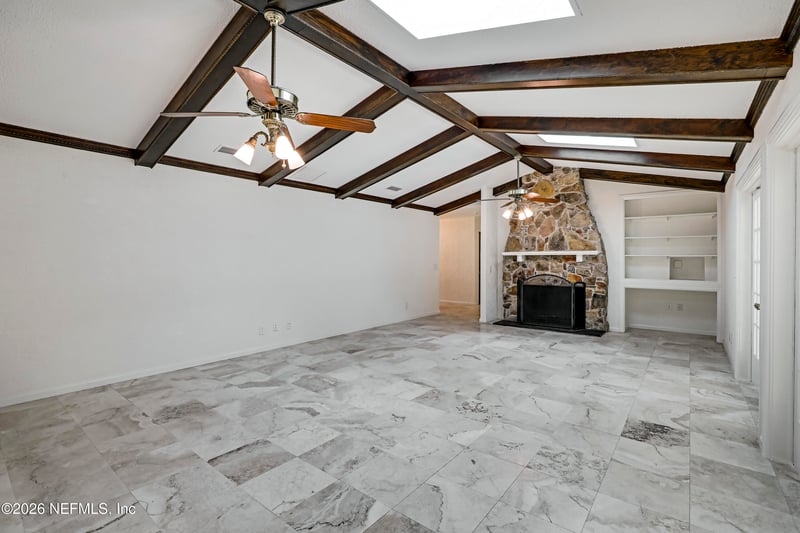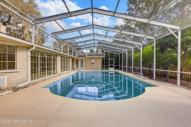 Listing details for 8691 San Servera Dr, Jacksonville, FL 32217 : **POOL HOME**GENERATOR**NEW HVAC**NEW ROOF** Welcome to this immaculate POOL HOME in the Heart of Beauclerc! This spectacular BRICK HOME sits on a HUGE CORNER LOT with well-manicured landscaping, lush trees, and NEW FENCING. Owned and well cared for by only one family, this property is being offered at 140K UNDER APPRAISED VALUE. Peace of mind comes standard with all major items completely REDONE, including a NEW ROOF (2025), NEW HVACS (2024), updated windows, new plumbing water lines, and a ''Quietsource'' WHOLE HOUSE GENERATOR. Inside, you will find updated bathrooms, NEW FLOORING AND CARPET throughout, and an open living room featuring gorgeous vaulted ceilings, exposed wooden beams, and a wood-burning FIREPLACE. The layout includes 5 bed/4 bath, featuring a GUEST SUITE with a private full bath. The huge master suite is a true retreat, boasting a walk-in closet, a separate PRIVATE STUDY with its own fireplace, and private access to the sunroom and pool. Step into the 600+sqft SUNROOM with cascading natural light overlooking your backyard oasis. The screened 40x20 8ft deep pool features newer equipment, surrounded by a FULLY FENCED BACKYARD. Additional features include a 16x8 SHED w/ electric, hurricane shutters, an IRRIGATION WELL, and a water softener system. With a large garage and TWO DRIVEWAYS--one ideal for boat/extra parking--this home has it all! Located off of Baymeadows Rd, you are minutes from shopping, dining, and easy commuting! This isn't just a home; it's a masterpiece that defines Florida luxury living at its peak. Schedule your private tour today to experience it for yourself!