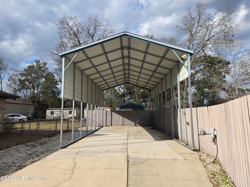 Listing details for 8805 Country Woods Ct, Jacksonville, FL 32222 : Explore this pool home situated on a corner lot exceeding half an acre. The property features a tiled, separate dining room; living room with wood flooring and fireplace; and a galley-style kitchen with oak cabinetry and granite countertops. Additional highlights include a split-bedroom floor plan, side-entry two-car garage, oversized covered parking area, and a detached storage bay with additional covered parking. This property is eligible under the Freddie Mac First Look Initiative through 03/21/2026