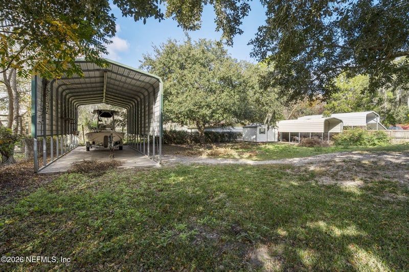 Listing details for 8850 San Rae Rd, Jacksonville, FL 32257 : Located in the highly sought-after Beauclerc Mandarin North area, this impressive 2,369 sq. ft. residence offers a perfect blend of updated comfort and unmatched outdoor utility. The home features a desirable split-bedroom and semi-open concept floor plan with vaulted ceilings, highlighted by a primary suite that boasts dual walk-in closets. Situated on a rare, fully fenced half-acre lot with no HOA or CDD fees, the property is a dream for outdoor enthusiasts, offering specialized covered RV parking (14x40) and dedicated boat storage (12x30). Major mechanical updates provide long-term peace of mind, including a brand-new roof installed 2 years ago and a 4-year-old AC system. Whether you are relaxing on the massive 12x40 screened back porch or utilizing the oversized driveway and equipment shed, this home provides the space and freedom you've been searching for!