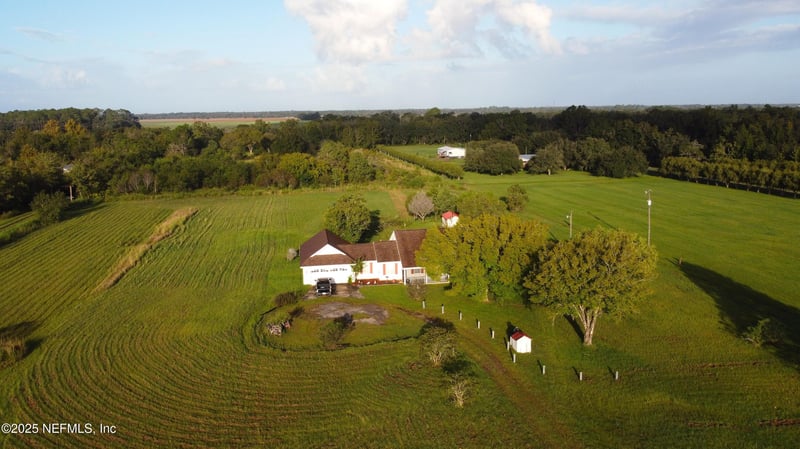 Listing details for 8905 Reid Packing House Rd, Hastings, FL 32145 : RARE FIND in St. Johns County! This gorgeous ranch-style home on approximately 5 acres of cleared pasture blends comfort, space, and country charm. Recent upgrades include a brand-new roof, 2025 A/C, 2025 hot water heater, refrigerator, dryer, and fresh paint throughout. The spacious owner's suite offers two large mirrored closets, a sunny nook, sliding doors to the porch, and a versatile bonus room. The great room features wood floors, vaulted beamed ceilings, and a brick wood-burning fireplace. The kitchen shines with stone countertops, tile backsplash, and stainless-steel appliances. A flexible room off the two-car garage makes an ideal office, workout space, or guest room and opens directly to the screened, tiled front porch—perfect for enjoying peaceful mornings. Out back, the stone patio overlooks beautiful open views. There is an easement along west property line. Zoned Open Rural with no HOA, this property welcomes horses, livestock, RVs, or boats. The owner's suite offers 2 large closets with mirrored sliding doors a nook with windows, sliding glass door to the porch and a spacious bonus room. Enjoy the covered, tiled front porch or stone back patio with scenic views. The great room includes wood floors, vaulted beamed ceilings, and a brick wood-burning fireplace. The kitchen has stone countertops, tile backsplash, stainless appliances, and a wine cooler, with built-in cabinetry in the dining area. Attached to the garage is another flex room, ideal as office or guest room. No HOAideal for horses, livestock, boats, or RVs.