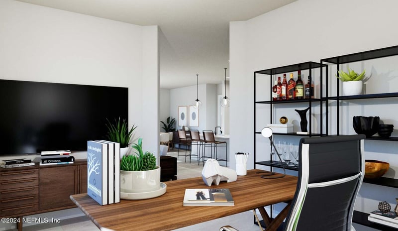 Listing details for 9 Falmouth Dr, Palm Coast, FL 32137 : The CLARK model at Reverie offers an elegant balance of comfort and functionality. This spacious home welcomes you with two bedrooms and a dedicated study, perfect for those who work from home or need a quiet retreat. The two full bathrooms ensure convenience, while the two-car garage provides ample space for vehicles and storage. Private homesite. At the heart of this home lies an open-concept kitchen that truly stands out with its premium features. The extended Colada White cabinetry creates a bright, airy atmosphere, complemented by sophisticated quartz countertops. A generous walk-in pantry offers abundant storage, while the LVT and tile flooring throughout adds both style and practicality. The Reverie community itself has been thoughtfully crafted for an active, engaging lifestyle. As you enter through the secure gated entrance, you'll discover a world of amenities designed for both recreation and relaxation.