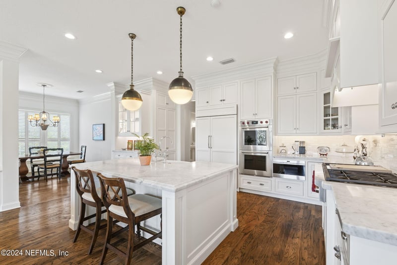 Listing details for 9020 Marsh View Ct, Ponte Vedra Beach, FL 32082 : Look no further ... a truly exceptional & rare opportunity to call this exquisite residence your home with a brand new roof being installed February 2026. Beyond meticulously renovated & cared for w/ superb curb appeal, it graces a prime location inside the exclusive gated community of Marsh Landing; Ponte Vedra's premier country club community. Nestled on a private street, this stunning brick home boasts picturesque golf course & expansive marsh views, within walking distance to the club, golf course & tennis courts. Custom built by Collier Classic Homes, you immediately feel the quality & classic features including solid core doors, oak floors & incredible millwork. It is beautifully renovated with the finest finishes throughout. This thoughtfully designed property features a spacious layout that seamlessly blends indoor & outdoor living. The kitchen is truly a masterpiece with furniture grade bespoke cabinetry to the ceiling, large island, honed Carrara marble countertops. Wolf double ovens, Miele dishwasher, Subzero fridge, Shaw's fireclay sink & Perrin and Rowe faucets. The gorgeous butler's pantry & lovely breakfast room with adjoining grill porch make entertaining a dream. The main floor also features a gracious primary suite with a honed marble spa-inspired bath & two walk-in closets, a beautiful study, elegant dining & living rooms, mudroom, 2 powder rooms & a family room with custom stone surrounded fireplace. The upstairs balcony & two 1st floor lanais provide perfect retreats for relaxation & entertainment. Upstairs includes 3 spacious suites, each with walk-in closets & baths, a fabulous upstairs family room or bedroom #5 & an expansive "Florida basement" for incredible conditioned storage or home gym. This spectacular property offers the epitome of gracious, resort-like coastal living in a brilliant location with oversized windows, high ceilings & incredible natural light. Plenty of room for a pool in the backyard. Social initiation included to Marsh Landing Country Club; must be activated within 30 days of closing, dues & fees apply & some restrictions apply.