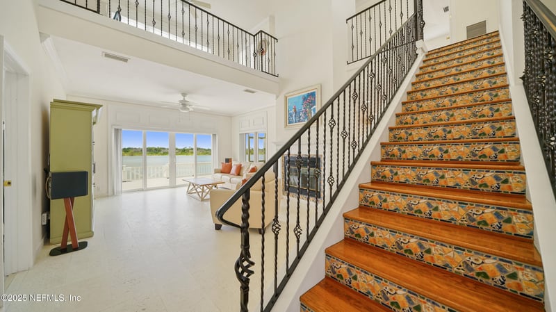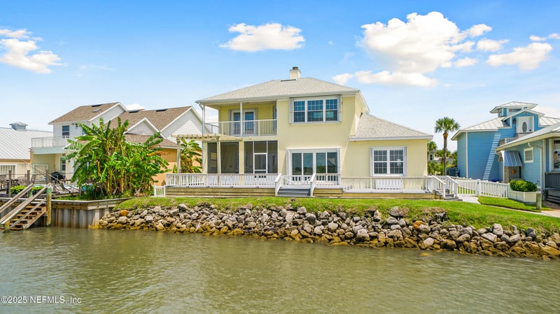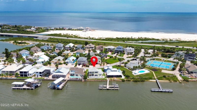 Listing details for 9179 June Ln, St Augustine, FL 32080 : Welcome to 9179 June Lane, a direct Intracoastal front retreat in the private, gated community of Summer Island in St. Augustine. This high-and-dry home has never flooded, offering peace of mind along with breathtaking west-facing views—perfect for enjoying unforgettable sunsets over the Matanzas River. Across the water lies a protected preserve that will never be built on, ensuring your views remain pristine. With 70 feet of waterfront, a boat lift, dipped pilings for durability, and a dock crafted from top-grade marine materials including composite decking, you'll enjoy a low-maintenance, long-lasting setup ready for boating at any tide. Inside, the home offers a thoughtful 3-bedroom layout, highlighted by two primary suites. The main-level primary suite provides convenience and accessibility, while the second-floor primary suite features its own private balcony overlooking the Intracoastal—an ideal retreat for sunset views. The third bedroom is generously sized, perfect for family, guests, or a home office. Elegant details such as crown molding pair with modern updates throughout, including a fully renovated kitchen, bathrooms, and flooring. For added security and efficiency, the home is equipped with hurricane-rated windows, sliders, and storm shutters, and all major systems have been updated including a 2015 roof and water heater, 2021 HVAC, and complete re-plumbing. The exterior is equally impressive, with professional landscaping, a paver driveway and walkways, a composite back deck, freshly painted exterior, and a fully equipped outdoor kitchen with plumbingperfect for entertaining with a view. Best of all, the beach is just across the street, making this a rare opportunity to enjoy both riverfront living and ocean access within a gated community that also offers resort-style amenities including a clubhouse, pool, tennis and basketball courts, a community dock with boat launch, and underground utilities.