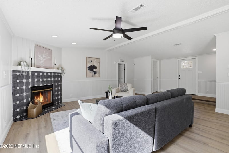 Listing details for 9210 Maxville Middleburg Rd, Jacksonville, FL 32234 : This recently renovated home with a massive kitchen and large walk-in shower with dual shower heads and a bench in the primary shower is a must see! This beautifully updated mobile home sits on nearly an acre of land down a paved road in Duval County conveniently located just across the Clay County line. Enjoy peace and privacy with a gated entrance and spacious yard. Inside, the home features a completely refreshed interior with all new flooring, a brand-new kitchen, and updated plumbing throughout. Major systems have already been taken care of, including new appliances, a new HVAC system with new ductwork, newer roof, and a new water heater. The home also includes brick skirting that adds durability and curb appeal. The well pump and septic have both been inspected making this home an excellent option for buyers looking for a worry-free property with room to spread out. With modern upgrades, a large lot, and a convenient location, this home is ready for its next owner.