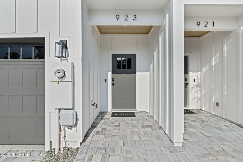 Listing details for 923 2nd Ave, Jacksonville Beach, FL 32250 : Beautifully designed coastal townhome just blocks from the ocean in the heart of Jacksonville Beach-LOADED with upgrades! Built in 2024, this residence blends modern coastal style with thoughtful construction and high-end finishes throughout. From the moment you step inside, you'll notice the attention to detail-soaring ceilings, designer lighting, and a light, airy feel that perfectly complements the beachside setting. The kitchen is both functional and elevated, featuring 42'' shaker cabinetry with soft-close doors and drawers, Pompeii quartz countertops, a tiled backsplash, gas cooktop, and upgraded stainless steel appliances--ideal for everyday living and entertaining. Custom touches can be found throughout, including built-ins, tongue-and-groove accents, upgraded wood shelving in all closets, and durable low-maintenance LVP flooring throughout-no carpet. The primary suite offers a spa-like bath with dual vanities, designer tile, rain shower head, and frameless glass enclosure Constructed with quality in mind, this property includes ZIP System wall sheathing, James Hardie siding, architectural shingle roofing, firewalls between units, and a fully sprinklered fire protection system-offering enhanced durability and peace of mind. Additional features include a full alarm system, video doorbell, smart locks, smart garage door opener, and an attractive landscaping package with full irrigation. Whether you're looking for a primary residence, a second home near the beach, or an investment opportunity with flexible use potential, this property delivers. Furnishings are negotiable for a seamless, turnkey experience.