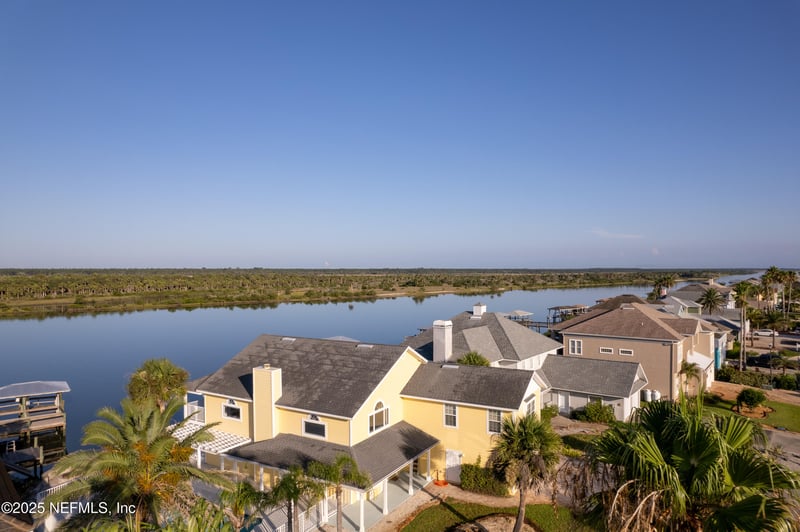 Listing details for 9277 July Ln, St Augustine, FL 32080 : Welcome to one of the most stunning waterfront properties in the exclusive gated community of Summer Island—perfectly positioned between St. Augustine Beach and Marineland. This 5-bedroom, 4-bathroom coastal retreat offers nearly 3,500 square feet of thoughtfully designed living space, capturing the essence of Old Florida elegance with a nod to the timeless charm of the Henry Flagler era. Set on one of the premier lots in the neighborhood, the home showcases sweeping views of both the Intracoastal Waterway and the Atlantic Ocean. Your private deep-water dock allows for seamless boating adventures, while the saltwater pool and outdoor living space—strategically placed on the south side of the home—create the ultimate entertaining oasis. Enjoy covered porches, a fully equipped summer kitchen, and a second-story master suite balcony that invites you to unwind with breathtaking sunsets and coastal breezes.