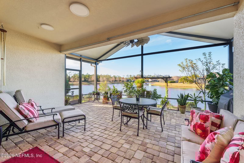Listing details for 93 Lantern Oak Ln, Ponte Vedra, FL 32081 : WATERVIEW ESTATE HOME with breathtaking long lake views in the most desirable 55+ community of Del Webb Ponte Vedra. The highly sought-after Infinity Estate floor plan, one of the largest in the community, offers 3669 sq ft of luxurious living space. Designed for both elegance and comfort, this home features beautiful wood flooring, abundant natural light, and a seamless open layout. The chef's kitchen impresses with stainless steel appliances, beverage refrigerator, expansive counters, and generous cabinetry, perfect for entertaining. The first-floor primary suite is a private retreat with spa-like ensuite. Upstairs provides complete privacy for visiting family or guests, with spacious bedroom, bath and living area. Step outside to a stunning screened paver lanai and unwind while enjoying peaceful panoramic lake views, ideal for relaxing mornings and sunset evenings. Resort-style living at its finest. Residents enjoy resort-style indoor and outdoor pools, Residents enjoy resort-style indoor and outdoor pools, the Anastasia Club and grand ballroom, a state-of-the-art fitness center and spa, pickleball, tennis and bocce courts, miles of scenic walking and biking trails, an on-site restaurant and café, dozens of clubs, classes and social events, a gated entrance, and a full-time lifestyle director creating a vibrant, active community.
