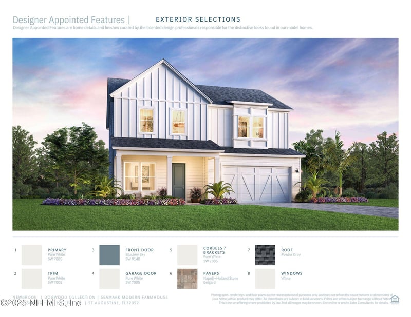 Listing details for 95 Pine Leaf Dr, St Augustine, FL 32092 : Behind the impressive gated entry to Newbrook, Toll Brothers flagship community in St Johns County, is this quick move in Seamark Farmhouse. As you step inside the Seamark you are greeted by 20' soaring ceilings and a gleaming oak staircase and adjacent flex room that could be used as a study or formal dining area. The Seamark's kitchen is upgraded with stacked to the ceiling cabinetry, built in oven/microwave, 36'' five burner gas cooktop and quartz countertops. The Great Room opens to a 27' covered lanai and large private backyard through a 12' sliding glass door. Upstairs is a spacious Owners Suite, a large loft area, two more bedrooms, a full bath and laundry room complete with sink and hookups for gas or electric dryer. This home also includes paver driveway and lanai, full home gutters, water softener loop, smooth walls and Rinnai gas tankless hot water heater. Call today to schedule your private tour of the Seamark and to learn more about everything Newbrook has to offer.
