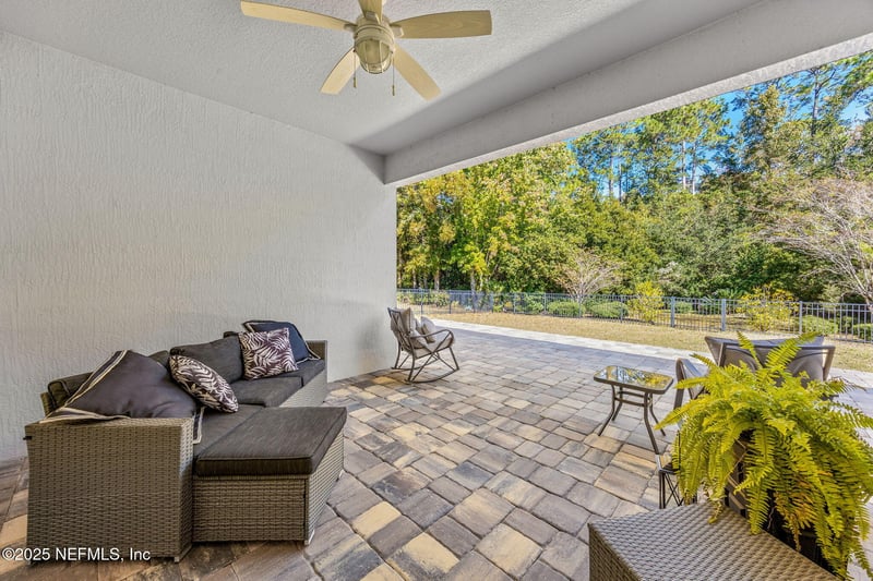Listing details for 95050 Poplar Way, Fernandina Beach, FL 32034 : CDD PAID OFF & FULL OF UPGRADES IN AMELIA NATIONAL- Immaculate 4BR/3BA home w/office- in Amelia National Golf & Country Club. Brick paver driveway, fresh exterior paint, NEW ROOF, and landscape lighting create standout curb appeal. Inside, bamboo floors and plantation shutters complement the open layout connecting the kitchen, dining, and great room. The kitchen offers abundant cabinetry, an oversized island, and a Samsung 4-door refrigerator. The primary suite includes two walk-in closets and dual vanities, soaking tub and separate shower. Bedrooms three and four share a Jack-and-Jill bath. A private office provides flexibility for work or hobbies. Out back, a new brick paver patio—12x14 covered plus 14x41 open—offers space for dining or entertaining. Wrought-iron fencing encloses the yard, ideal for pets or play. Located in Amelia National, a gated community with golf, tennis, fitness, pool, and clubhouse dining—all with the CDD bond fully paid off.
