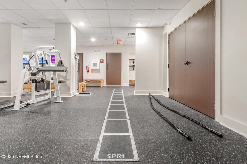 Listing details for 955 Registry Blvd #105, St Augustine, FL 32092 : Exceptional opportunity to own a fully equipped office suite in the prestigious Laterra Condominium complex, located within the gates of the King & Bear at World Golf Village. Currently operating as a private gym with active memberships, this 2,420 sq ft space is thoughtfully designed and professionally outfitted. Features include digital keyless entry, a welcoming reception area, two full bathrooms with showers and multiple stalls, ½-inch commercial-grade rubber flooring, full wall mirrors, professional gym equipment (inventory list available), a storage closet, drop ceilings with recessed lighting, and large windows offering serene views of surrounding greenery. The Laterra community consists of 149 individually owned condominiums and offers resort-style amenities including pools, hot tubs, and the renowned Circles of Wellness Spa. This flexible space presents a rare opportunity for continued use as a fitness facility or conversion to a wide variety of professional office or service-based uses. A one-of-a-kind offering in a prime locationdon't miss your chance to own this versatile commercial suite.