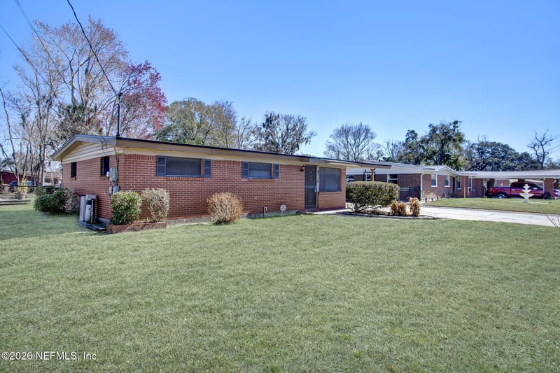 Listing details for 9715 Flechette Ave, Jacksonville, FL 32208 : This all brick three bedroom, one and a half bath home has that solid, lived in charm people keep trying to recreate and rarely pull off. It feels warm the second you walk up to it. The big stuff is already handled, roof from 2020, HVAC from 2015, water heater from 2023, so you are not walking into a long list of immediate surprises. It's the kind of house that lets you settle in and breathe before deciding what you want to change. Out back, the yard is large enough to stretch out, garden, add on later, or let kids and dogs burn off energy. The home could use standard cosmetic updates, nothing scary, and the structure feels strong. Good bones matter. Whether you're a first time buyer ready to trade a little elbow grease for built in equity, someone thinking long term rental income in a solid area, or an investor with an eye for a clean buy fix sell, this one gives options. It's comfortable now and leaves room to make it better, which is honestly the sweet spot.