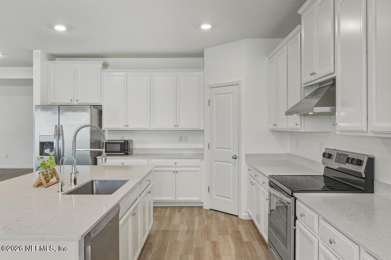 Listing details for 9899 Ansley Lake Dr, Jacksonville, FL 32222 : This Stunning 4 Bedroom 3 Full Bath home with 2660 Sqft of living space built in 2023 features tons of upgrades, is situated in a Cul De Sac & has NO CDD FEES !! As you pull up you will notice the 3 car garage and extended pavered driveway with ample room for parking and all your toys ! As you enter the foyer you will see tile flooring throughout the entire home !! To your left are 2 spaces bedrooms with generous closets which feature built-ins, as well as a full bath. There is also a flex space which can be used as an office or formal dining area. Foyer opens to the family room kitchen combination which is great for entertaining. Kitchen features stainless steel appliances which all convey, quartz countertops , tons of cabinets , large island and dining area ! Family room features tray ceilings and large sliders leading out to the covered lanai and spacious backyard with room for a pool ! Large primary bedroom has an en-suite bath with his and her vanities , tub with a separate shower and large walk in closet also featuring built-ins . There is also another spacious bedroom and full bath. This beautiful home has so much to offer and will not last !!!