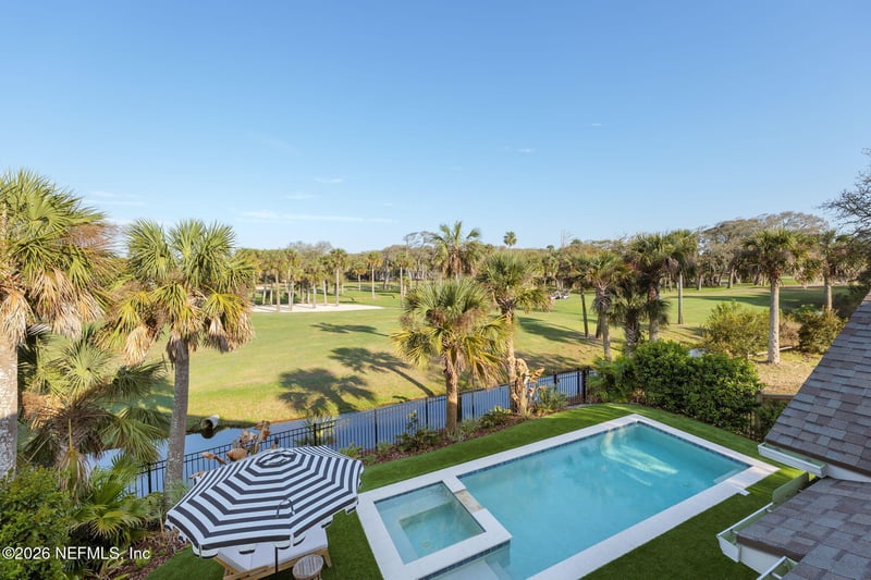 Listing details for 99 Ocean Course Dr, Ponte Vedra Beach, FL 32082 : Built in 2024 by local award winning custom homebuilder, enjoy world-class long range golf & water views of the Ponte Vedra Inn & Club's Ocean Golf Course. This heirloom pool/spa home is the newest completed retreat tucked into the back of Ponte Vedra Beach's highly coveted Avalon community. Embody the Florida lifestyle & enjoy ocean sounds drifting across the course from the vaulted lanai w/ its cypress-clad outdoor kitchen or relax on the expansive breezy balcony. Custom details & designer touches include white oak wood flooring, beams, custom kitchen cabinets & carpentry, 2 laundry rooms, limestone porch floors, T&G ceilings, landscape lighting, & premium turf! Luxury primary suite on 1st floor- Marble bath & dual WIC's. Top notch construction- Pella windows, hardie siding including soffits/fascia, gas tankless Rinnai, artesian well, spray foam attic insulation, H2O softener, epoxy garage coating, & more! Located in A-rated St. Johns County School District & easy Jax access via JTB