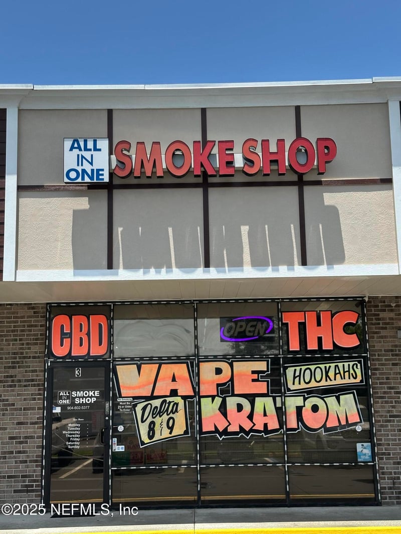 Listing details for 997 Blanding Blvd #3, Orange Park, FL 32065 : ALL-IN-ONE Smoke Shop for sale. Inventory and fixtures included. Located on Blanding Blvd with much more visible from the other direction. Currently, offer all smoke & tobacco products such as wraps, flowers, gummies, vapes and smoke accessories. Reasonable rent with negotiable lease terms. (No Real Estate Included). Much more potential to offer with skills and creativity. Contact an agent for more details or showing.